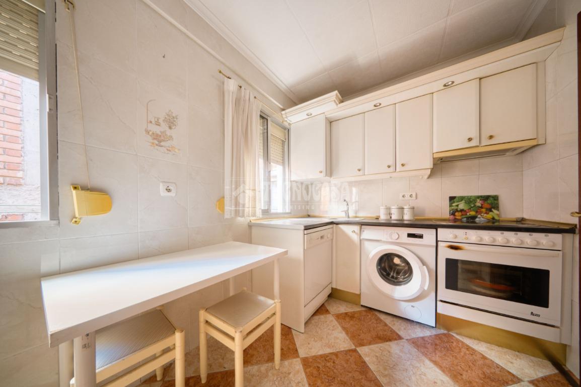 Vivienda situada en la calle Gallo, con 77 m² útiles distribuidos en tres dormitorios, salón-comedor con salida a una terraza cubierta con vistas a la propia calle, cocina amueblada y equipada con electrodomésticos, y baño completo con ventana.
